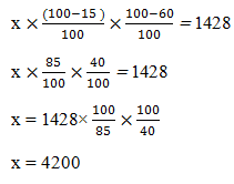 4) यदि कोई निश्चित संख्या क्रमश: 60% और 15% कम कर दी जाती है, तो संख्या 1428 हो जाती है, संख्या ज्ञात कीजिये।