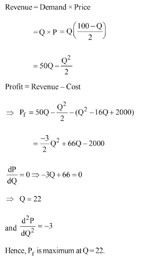 (ii) उत्पाद के निर्माण की लागत (C) निम्नलिखित तरीके से उत्पादित मात्रा से संबंधित है C = (Q2 – 16Q + 2000)