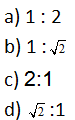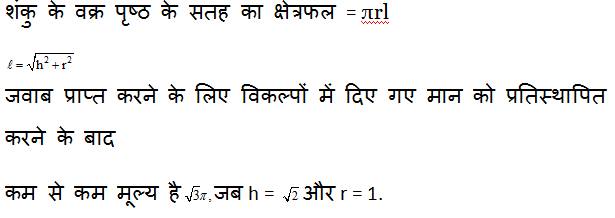 2) दी गई क्षमता का एक शंकू के आकार का तम्बू बनाया जाना है। तम्बू के लिए आवश्यक कैनवास की न्यूनतम मात्रा के लिए आधार के त्रिज्या से ऊंचाई का अनुपात है: