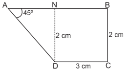 1) ABCD एक ट्रैपेज़ियम(चतुर्भुज) है, जैसे कि AB, DC समानांतर हैं और BC उनके लिए लंबवत है।यदि ∠DAB=450, BC = 2 सेमी और CD=3सेमी तो AB किससे बराबर है?
