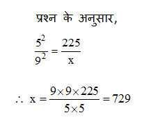 7) हीरे की कीमत उसके वजन के वर्ग के समानुपाती है। यदि 5 कैरेट वजन वाले हीरे की कीमत 225 रुपये है| तो 9 कैरेट वजन वाले दूसरे हीरे की कीमत ज्ञात करें ?