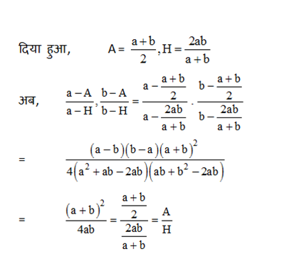 6) यदि A अंकगणित माध्य (AM) और H अनुकूल माध्य (HM) दो मात्रा a और b के बीच है, तो,