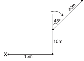2) एक आदमी बिंदु X से पूर्व की ओर चलना शुरू करता है और 15 मीटर के बाद वह बाएं मुड़ता है, और 10 किमी तक जाता है, और फिर से 450 दाईं ओर मुड़ता है और 20 मीटर तक जाता है। प्रारंभिक बिंदु के संबंध में किस दिशा में सामना करना पड़ रहा है?