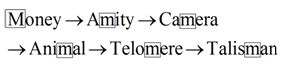 प्रत्येक अगले शब्द में अक्षर ‘m’ अपने दाई ओर एक स्थान खिसक जाता है।