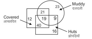 15) दी गई आकृति में, कितनी झोंपड़ियाँ आच्छादित तथा दलदली हैं?