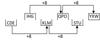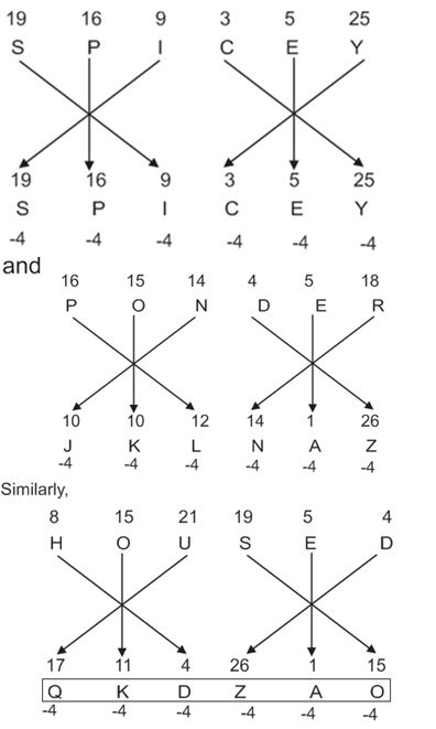 अतः उसी सांकेतिक भाषा में HOUSED को QKDZAO लिखा जायेगा।