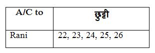 1) रानी सही ढंग से याद करती है कि उसने 27 जनवरी से पहले 21 जनवरी के बाद छुट्टी ली थी। उनके सहयोगी रीना ने 23 जनवरी को पत्तियां ली लेकिन उस दिन रानी उपस्थित थीं। यह 24 जनवरी सार्वजनिक अवकाश था और 26 जनवरी रविवार था, फिर किस दिन ‘m जनवरी‘ को रानी ने छुट्टी ली थी?