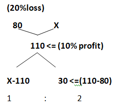 He sold 1/3 of those oranges at 20% loss and overall profit of 10%, so we using mixture allegation method,