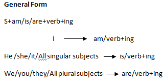| Present continuous tense | S+be form (pr)+v4+o | I am writing a letter. |