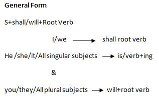| Future continuous tense | S+m.a+be+v4+o | I will be writing a letter. |